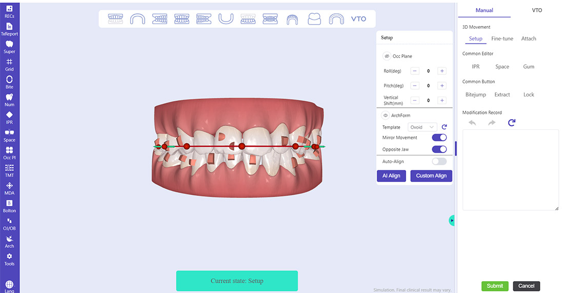 Il movimento di ogni dente può essere completamente gestito attraverso i controlli 3D.